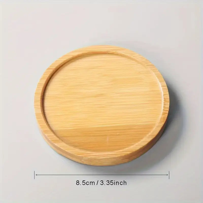 Glasunderlägg gjort av Bambu med en diameter på 8,5 cm.