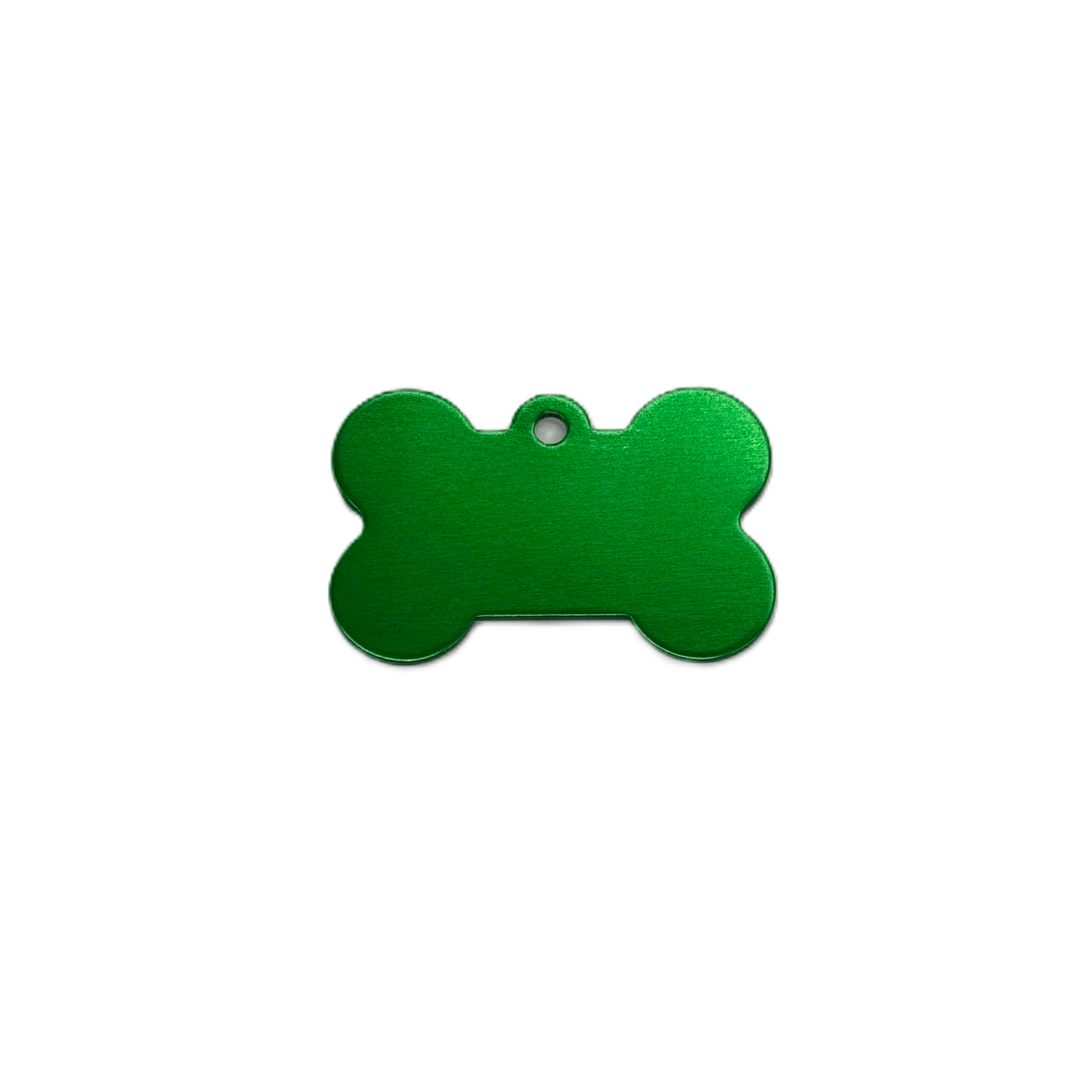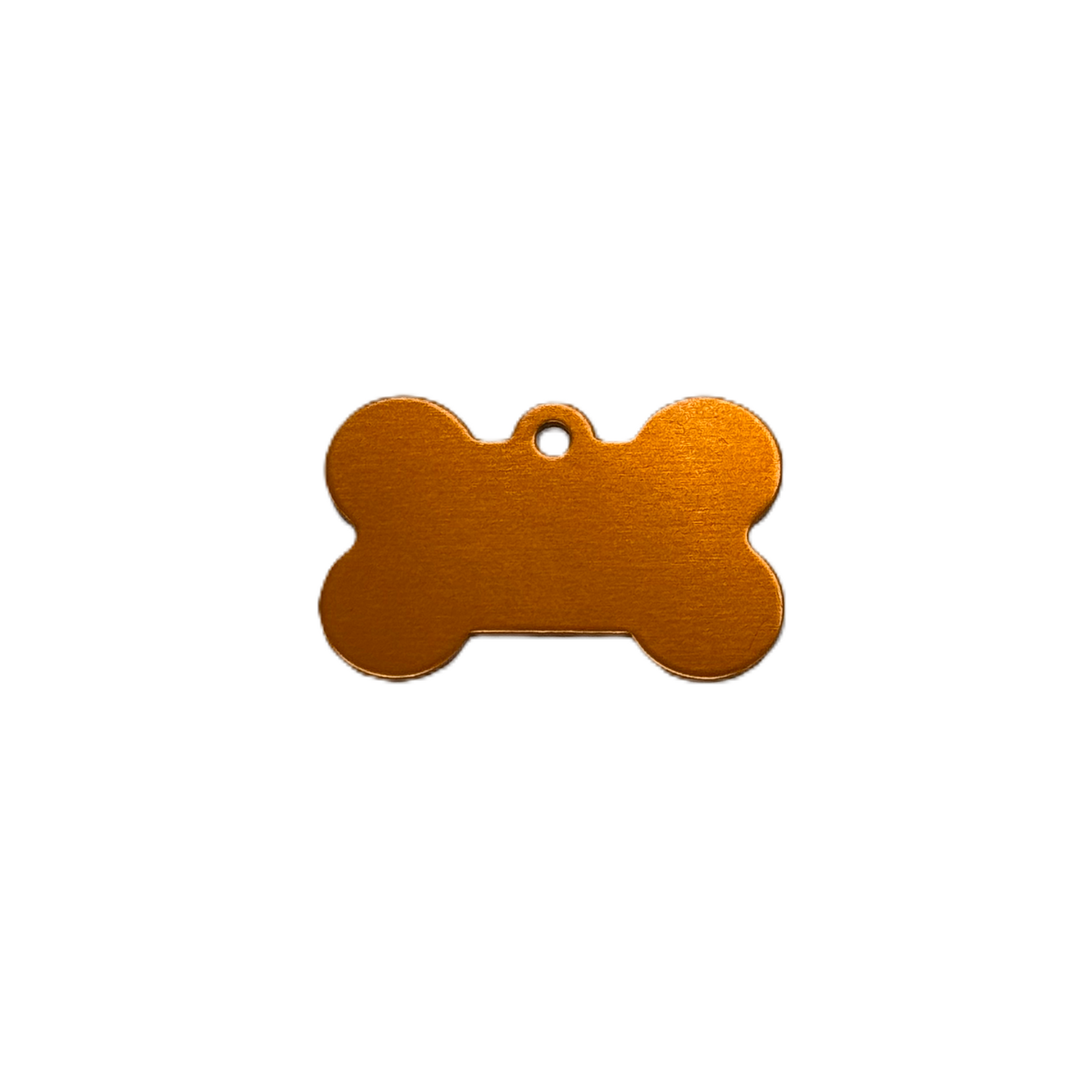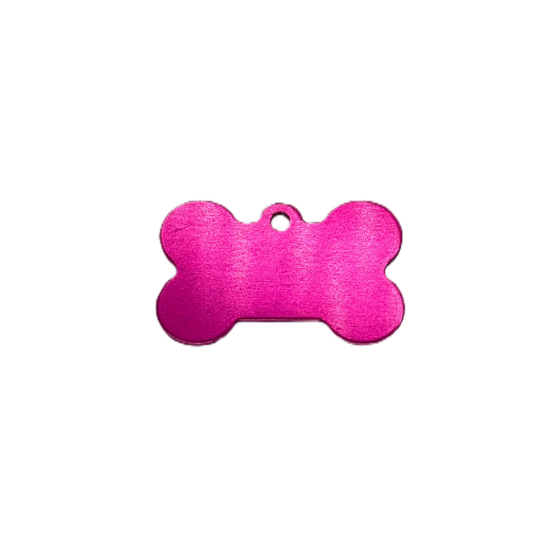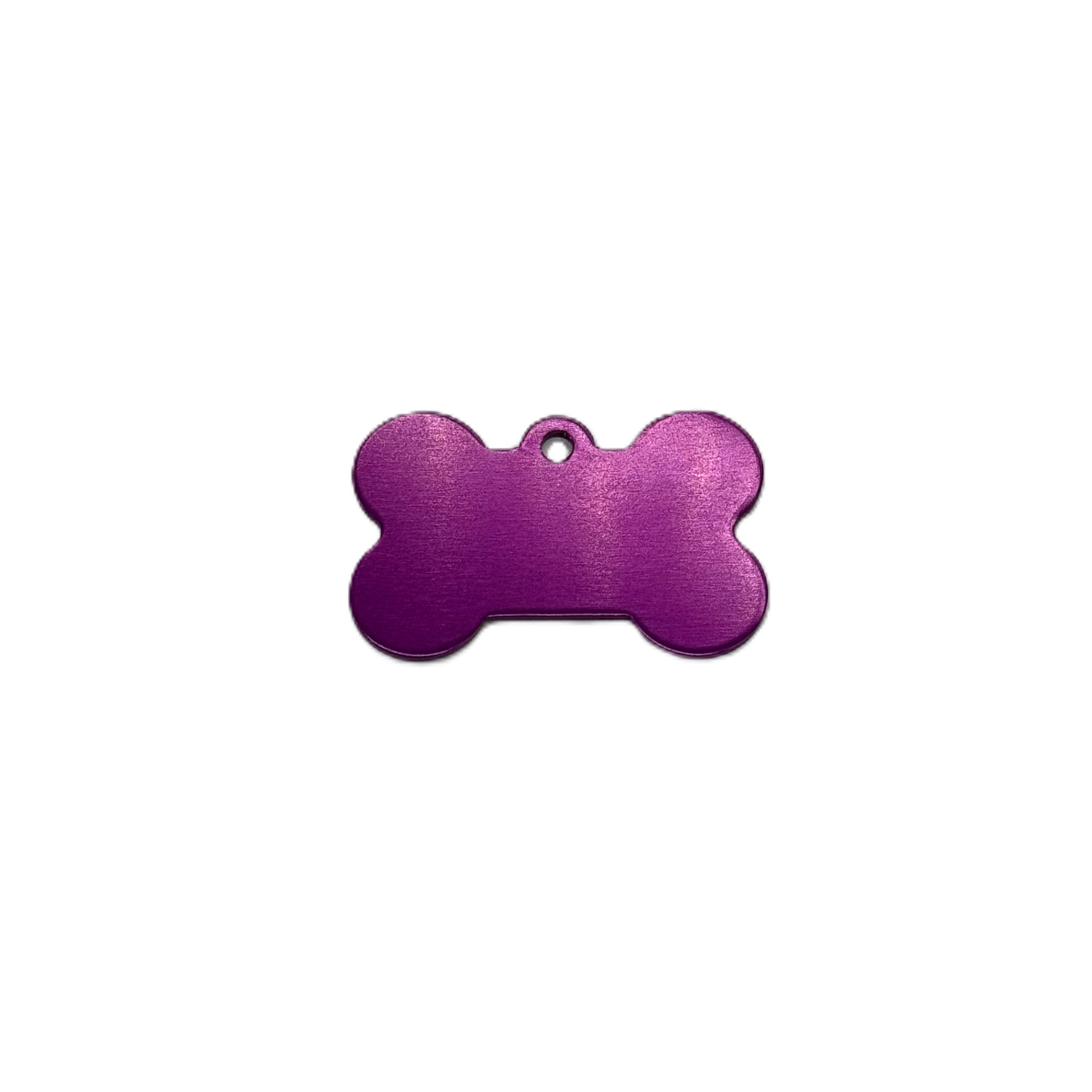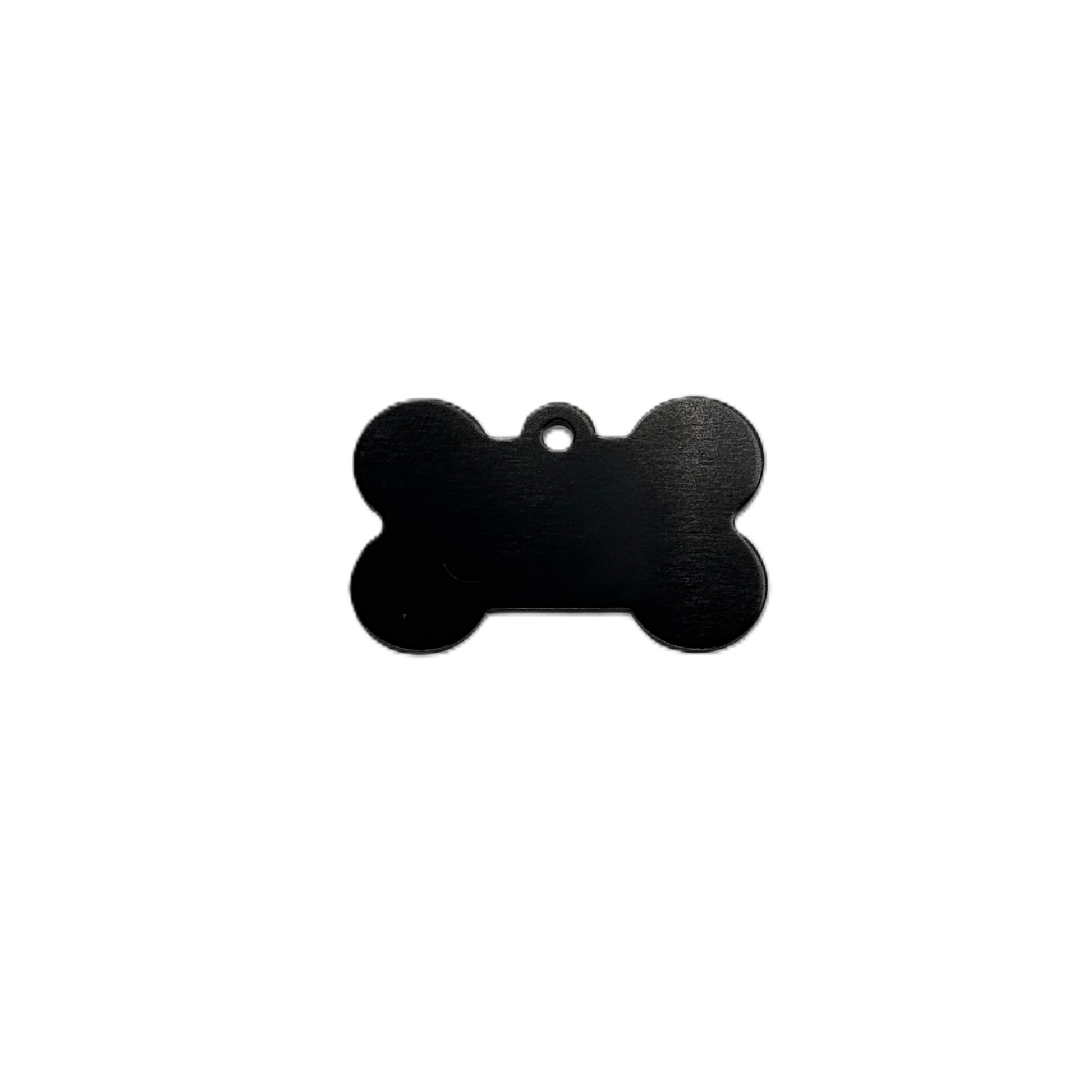 Namnbricka i metall i form av ett hundben. Benet mäter 3,9 cm på bredden och 2,5 cm på höjden. Liten nyckelring med diameter på 1,4 cm ingår.