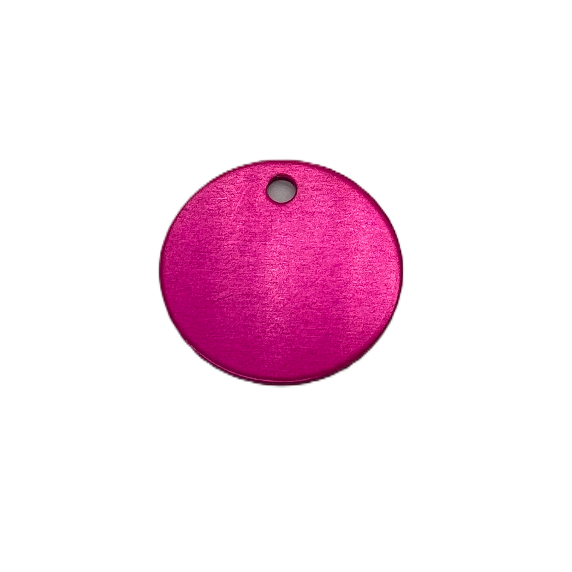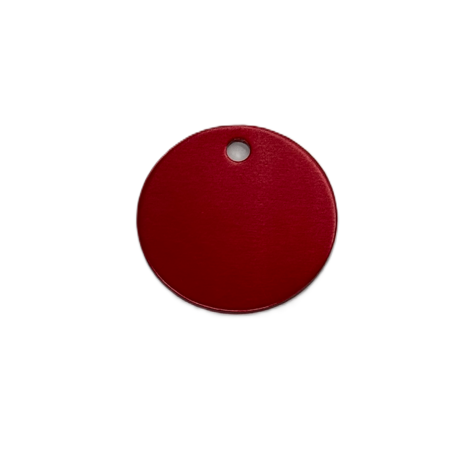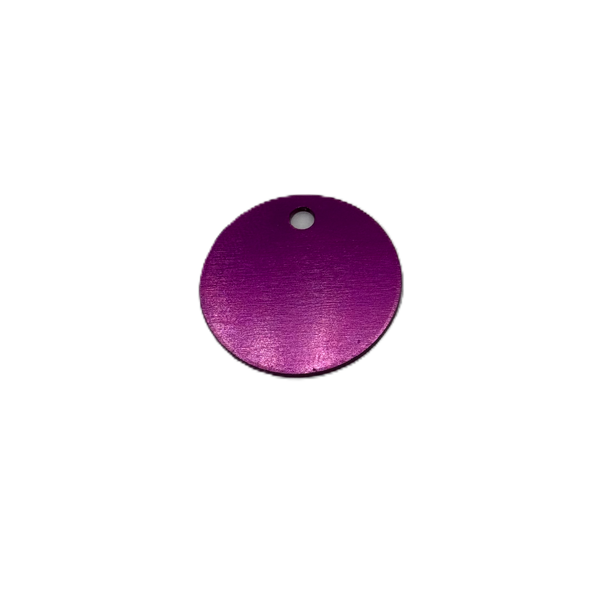 Namnbricka, rund med en diameter på 2,5 cm. Liten nyckelring med diameter på 1,4 cm ingår.