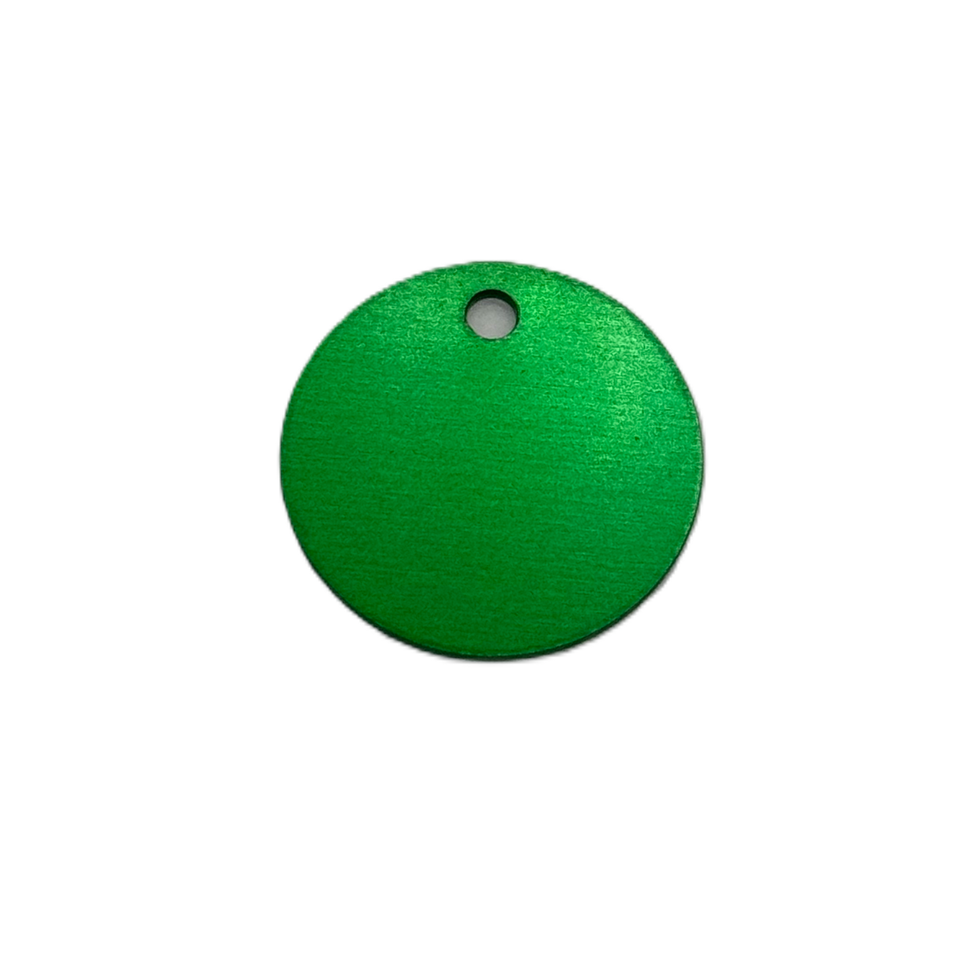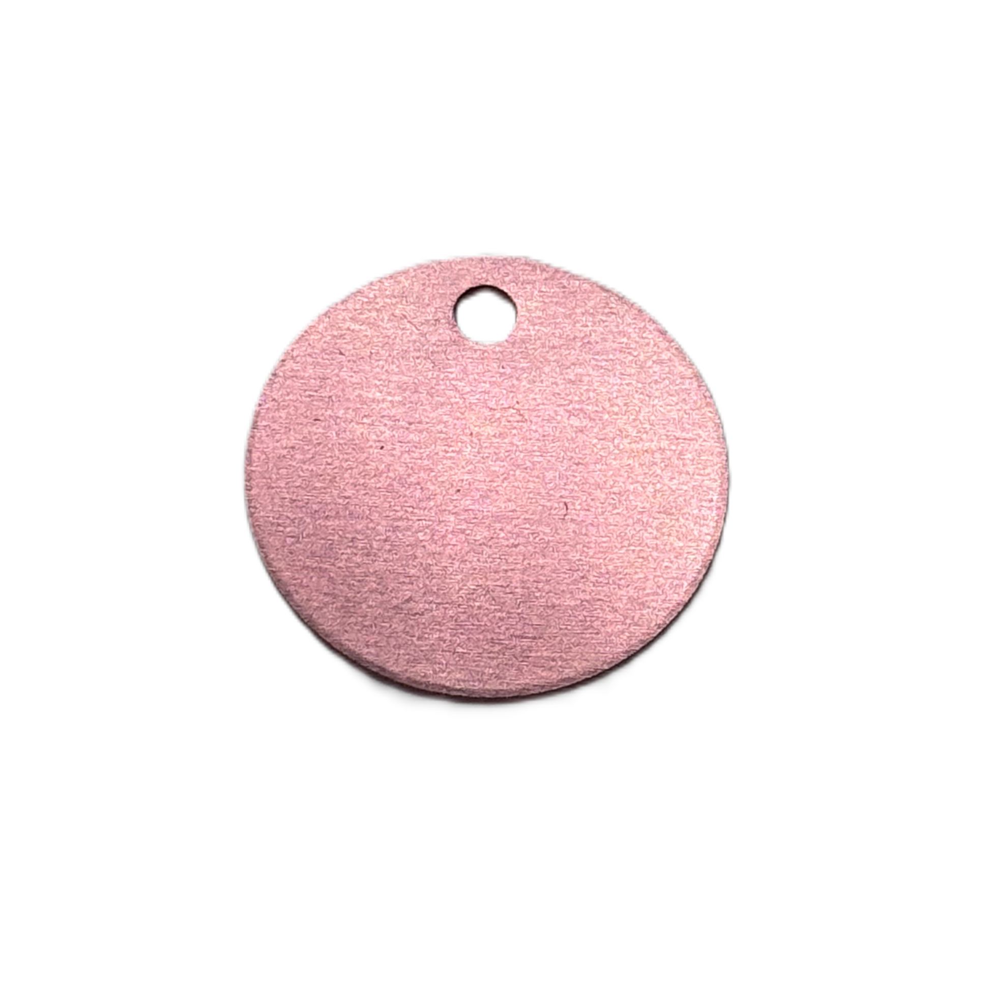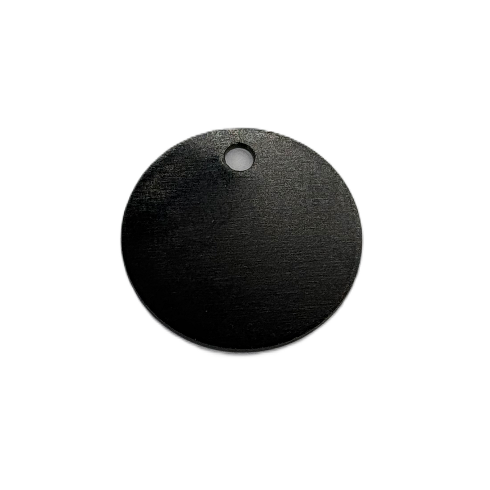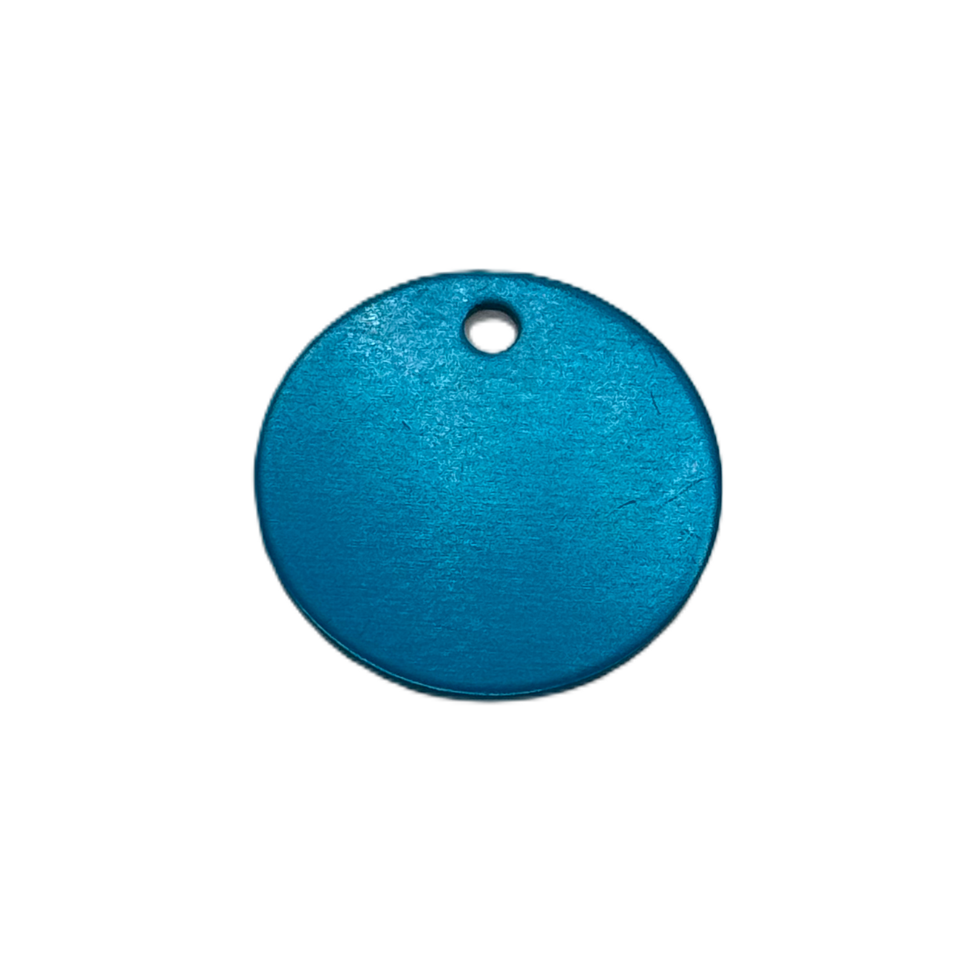 Namnbricka, rund med en diameter på 2,5 cm. Liten nyckelring med diameter på 1,4 cm ingår.
